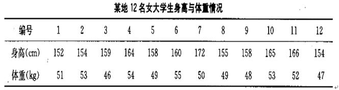 (共用材料)某地12名女大学生身高与体重数据如表,请回答为了比较体重和身高的离散情况,宜选用