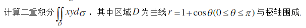 计算二重积分dDxy,其中区域D为曲线r1cos0与极轴围成.