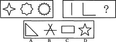 第一组各图形角的数量依次为4、8、16,构成公比为2的等比数列;第二组图形的线段数应依次为1、2,即第三个图形应由四条线组成。因此答案选C。
