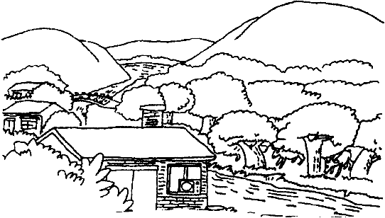 蓝蓝的天空飘(piāo)着一朵朵白云。山谷(gǔ)里有一条小河,河水慢慢( màn)地流着。不远处有一片绿色的竹林,竹林边开放着火红的野(yě)花。这里的空气(qì)多么新鲜( xiān)!这里的风景(jǐng)多么美丽!这是什么地方?这是我可爱的家乡。