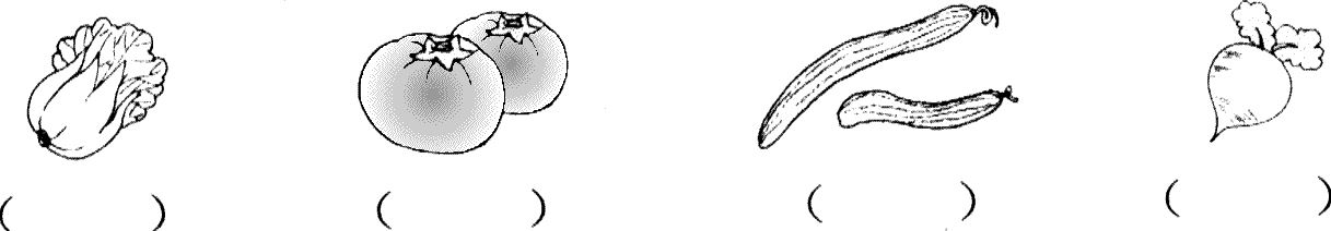 dà luó bo,shuǐ líng líng,xiǎo bái cài,lǜ yíng yíng, 大萝卜,水灵灵,小白菜,绿莹莹, xī hóng shì xiàng dēng 1óng,huáng guā yì yǎo cuì shēng shēng. 西红柿像灯笼,黄瓜一咬脆生生。 duō chī shū cài shēn tǐ hǎo,zhuàng zhuàng shí shí shēng bìng shǎo. 多吃蔬菜身体好,壮壮实实生病少。什么像灯笼?打上“√”;什么脆生生?打上“△”。