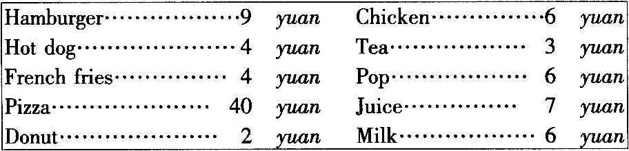 ? yuan. 5. How much for a cup of