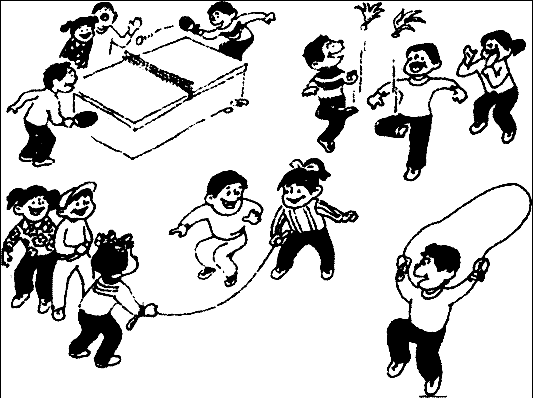看图写话。 提示:什么时候,同学们在什么地方干什么?请你用上“有的……有的……有的……还有的……”写一段话。