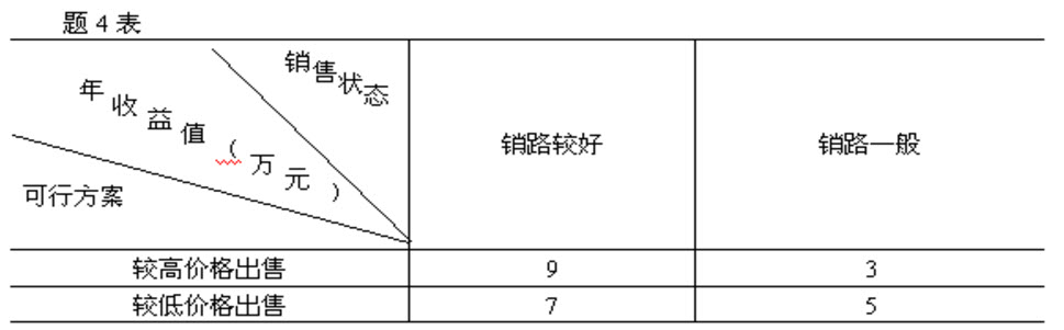 某公司计划录制一位新歌星的唱片,具体的收益值表如题4表。若用最大最小决策标准作决策时,在销路一般状态下,以较高价格出售时的年遗憾值为()