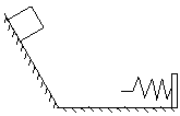 如图所示的实验装置中,物块沿光滑斜槽向下滑动时__\_能转化为___\_,当物块接触弹簧向右运动时,____\__能转化为_______能,这个实验说明不同形式的能量可以相互转化。