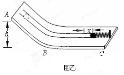 (3)课外兴趣小组活动中,物理老师曾经告诉同学们“重力势能的大小与物体被举起的高度成正比”.善于动脑的小明利用上述器材,设计了一个研究弹簧弹性势能_E_与压缩量_x_之间关系的实验方案:(实验装置如图乙)