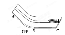 (7分)在探究“动能大小与哪些因素有关”的活动中,提供以下器材:中间有沟槽的木质轨道(如图甲,其中_AB_部分倾斜并与平直部分_BC_平滑连接,沟槽较为光滑)、大小与沟槽相当的玻璃球、铁球各一只、轻质弹簧、刻度尺各一个.