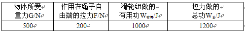 在不计绳重和摩擦的情况下,利用一滑轮组匀速提升物体,下表是在利用该滑轮组将一物体匀速提升到一定高度时采集到的信息。