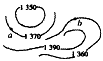 如图所示,为我国某地的等高线图,若一架飞机从a点飞到b点,则飞机的重力势能: