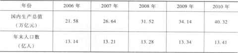 注:2005年年末人口数为13.08亿人。请根据上述资料回答下列问题:(1)我国“十一五”期间年均国内生产总值为()。