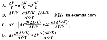 在柯布一道格拉斯生产函数中,表示资本弹性系数的是()。