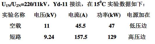 一台三相电力变压器额定数据为:SN=20000kVA,U1N/U2N=220/11kV,Yd-11接法,在150C实验数据如下: