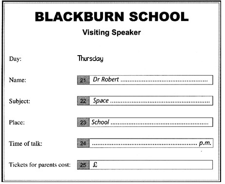 The whole school is going to listen to Dr Teale. We will use the school hall because none of the classrooms will be big enough. Classes will finish at twenty past two on Thursday because the talk will start at half past. Don't be late.