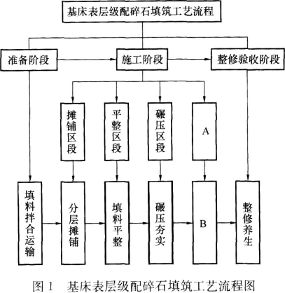 6.根据背景资料,给出路基段无砟轨道铺设工艺中A和B的工序名称。
