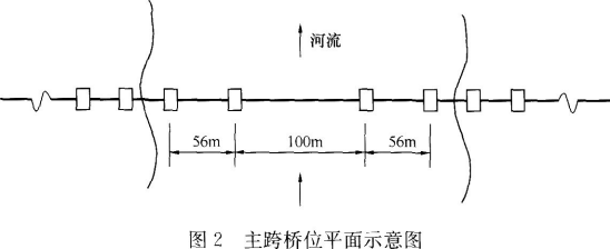 某铁路标段有一座双线桥,主跨为(56+100+56)m连续梁;主墩位于水深5m的河流中,基础为桩基,低桩承台。桥位平面如图2所示。