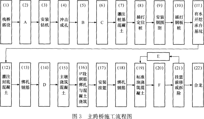 工作1:组织技术人员编制了该桥主跨的施工流程,如图3所示。