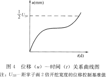 事件2:掌子面开挖至DK39+130时,对DK39+100~DK39+103段进行仰拱开挖,根据DK39+100处的围岩量测数据绘制了位移(u)—时间(t)关系图,发现位移速率不断上升,即d2u/dt2>0,如图4所示。