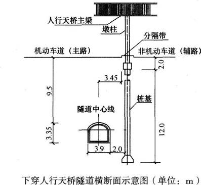 1.根据下穿人行天桥隧道横断面示意图,分析隧道施工对周边环境可能产生的安全风险。