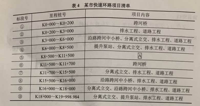 1、按表4所示,根据各项目特征,该建设项目有几个单位工程?写出其中⑤标段A的项目内容。⑩标段完成的长度为多少米?