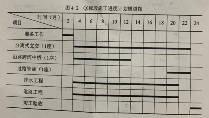 ③标段的施工单位向管理公司提交了施工进度计划横道图(如图4-2所示)
