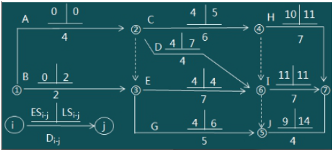 10、某双代号网络计划如下图(单位:天)则工作E的自由时差为()天