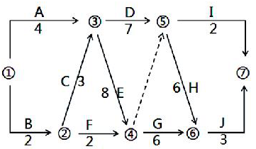 115、某工程双代号时标网络计划如下图所示,关于时间参数的说法正确的有()。