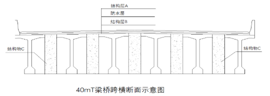 二级公路某大桥全长857m,桥宽12.5m,桥梁上部结构布置为4×25mT梁+6×40mT梁+(45m+80m+45m)悬浇连续箱梁+6×40mT梁+4×25mT梁。其中40m梁桥跨横断面如图3所示。