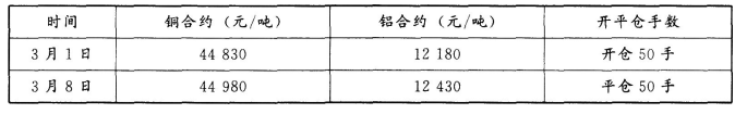 140、假设套利者认为某期货交易所相同月份的铜期货和铝期货价差过大,于是卖出铜期货的同时买入铝期货进行套利交易,交易情况如下表所示,则该套利者的盈亏状况为( )。(交易单位:5吨/手)