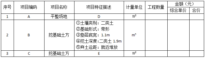 招标单位根据常规施工方案,结合陕西省建筑装饰工程消耗量定额,考虑工作面等因素,确定土方由基础垫层底面开始进行放坡开挖,工作面宽度为300mm,综合放坡系数取0.46,管理费率取为5.11%,利润率为3.11%。工程量清单计价表如4-1。