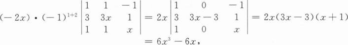 若按第1行展开,只有-2x乘以其代数余子式会出现x3项,故只要求出这一项即可.