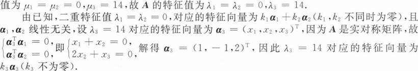 α1=(1,1,0)T,α2=(0,2,1)T.(Ⅰ)求A的特征值与特征向量;