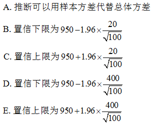 11、从均值为5000,方差为400的正态总体中抽取样本容量为100的一个样本,则重置抽样条件下样本均值的标准误差为()。