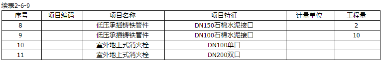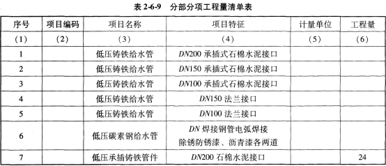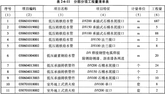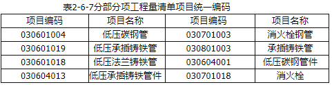 厂区室外给水管网相关分部分项工程量清单项目的统一编码见表2-6-7。
