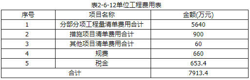 (2)请依据上述背景的要求,按工程量清单计价形式计算出年产400万t化工产品生产装置的单位工程清单费用。列出各项费用计算过程,计算结果填入单位工程费用表。(计算过程和结果均保留两位小数)