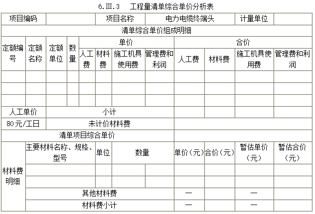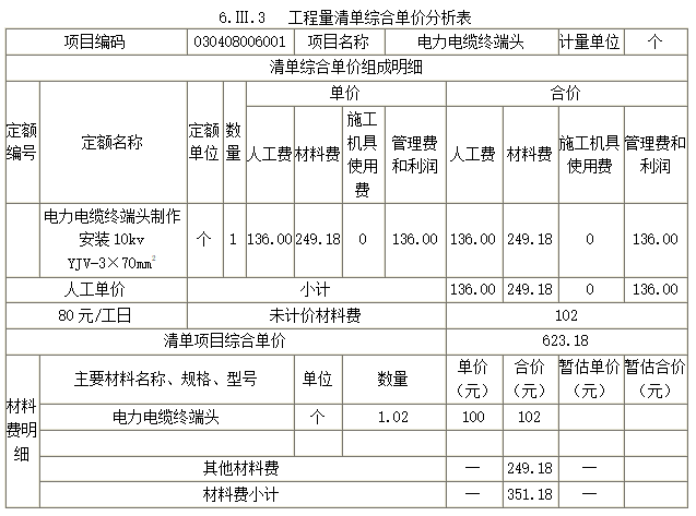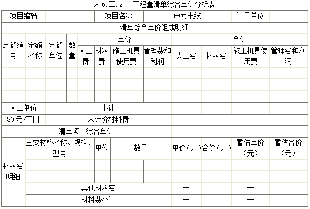 2.根据背景资料2中的相关定额,计算“电力电缆”和“电力电缆头”项目的综合单价,编制表6.Ⅲ.2、6.Ⅲ.3“工程量清单综合单价分析表”