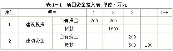 3.流动资金800万元,在项目计算期末回收。资金来源详见项目资金投入表。流动资金贷款年利率为3%,还款方式为运营期内每年末只还当年利息,项目期末偿还本金。
