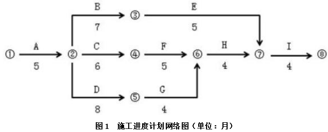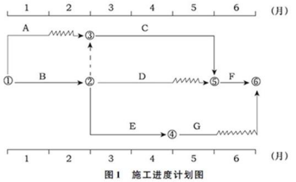 事件一:该单位工程的施工进度计划网络图如图1所示。因工艺设计采用某专利技术,工作F需要工作B和工作C完成以后才能开始施工。施工单位对该进度计划网络图进行了调整。