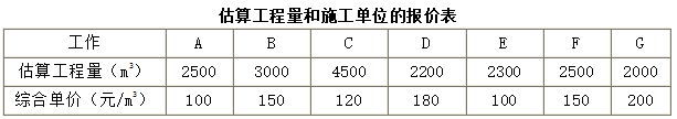 招标文件中工程量清单所列各项工作的估算工程量和施工单位的报价如下表所示。