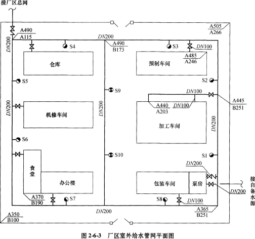 6、某厂区室外给水管网布置如图2-6-3所示。
