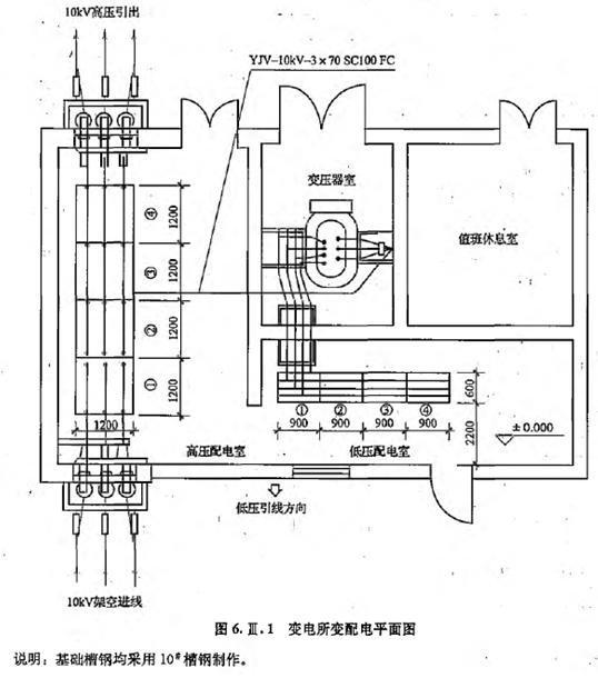 1.图6.Ⅲ.1~图6.Ⅲ.3所示为某变电所变配电工程的平面图和高、低配电系统图,图中③号高压成套配电柜到电力变压器的电缆管线的清单工程量设定为:φ100钢管暗敷为9m;电力电缆穿管敷设YJV-10KV-3×70mm2为10m,其另应增加的附加长度为3.5m。电力变压器型号为S9-M-1000kVA。