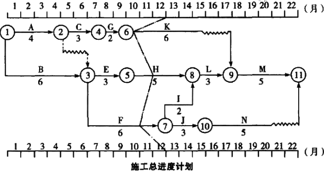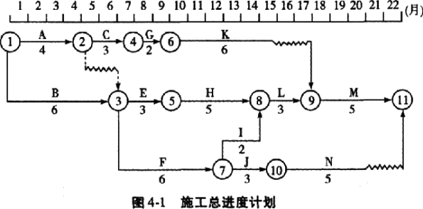 在工程开工前,施工单位在合同约定的日期内向总监理工程师提交了施工总进度计划(图4-1)和一份工程报告。总监理工程师对施工单位提交的施工总进度计划和工程报告进行了审查。