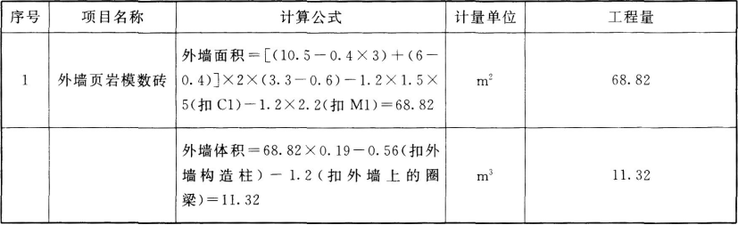 1.按《房屋建筑与装饰工程工程量计算规范》(GB50854—2013)计算外墙砌筑、内墙砌筑的清单工程量。