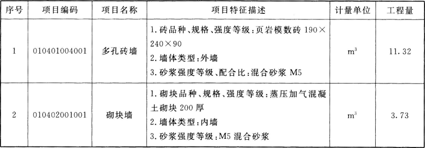 2.根据《房屋建筑与装饰工程工程量计算规范》(GB50854—2013)列出外墙砌筑、内墙砌筑的工程量清单。