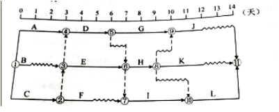 95、某项目分部工程双代号时标网络计划如下图,关于该网络计划的说法,正确的是()。