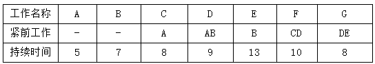 19、某工程项目由A、B、C、D、E、F、G组成,工作持续时间及逻辑关系如下,当使用单代号网络图表达该项目的监督计划,所有相邻工作之间的时间间隔的最大值()天。