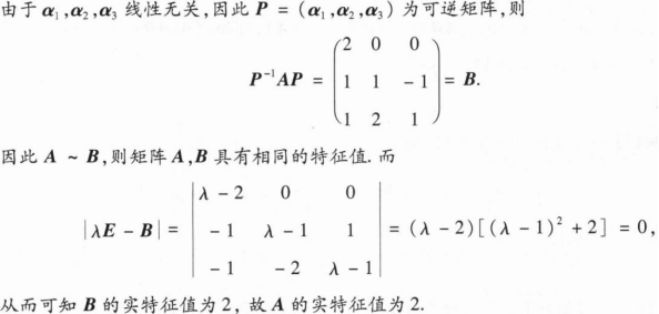14、设A为三阶矩阵,α1,α2,α3为线性无关的向量组.若Aα1=2α1+α2+α3,Aα2=α2+2α3,Aα3=-α2+α3,则A的实特征值为________.