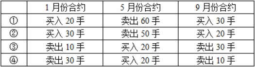 15、某套利者打算用玉米期货1月份、5月份和9月份三个合约做蝶式套利交易,下表中符合蝶式套利交易策略的是( )。