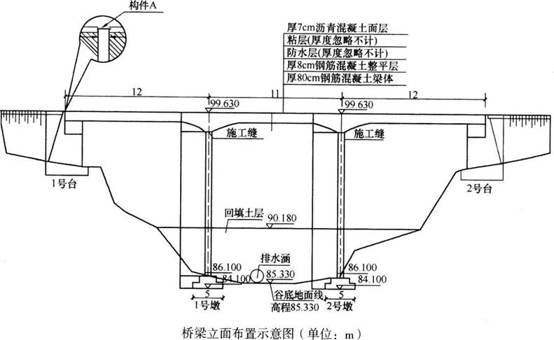 (1)根据该桥结构特点,施工时,在墩柱与上部结构衔接处(即梁底曲面变弯处)设置施工缝。