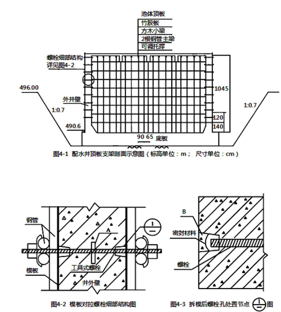 事件一:配水井基坑边坡坡度1:0.7(基坑开挖不受地下水影响),采用厚度6-10cm的细石混凝土护面。配水井顶板现浇施工采用扣件式钢管支架,支架剖面如图所示。