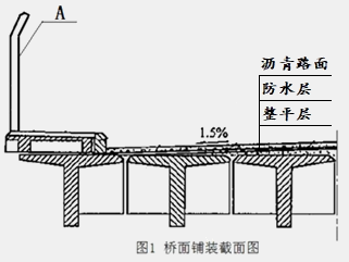 某施工单位承接一城市高架简支梁桥工程,全桥长576米,采用18×32m的T梁结构,每跨结构由8片梁组成,桥面宽度为12.8米,桥面铺装如图1所示,在施工中发生如下事件: